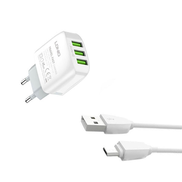شارژر LDNIO الدینیو مدل A3312 همراه با کابل MICRO USB