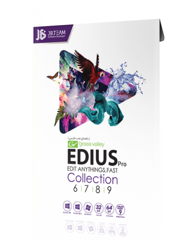 نرم افزار ادیوس – Edius 9 ، در این مجموعه شرکت جی بی تیم مجموعه ای کامل از ورژن های گوناگون نرم افزار ادیوس Edius را فراهم کرده است. در این مجموعه ورژن ۹ به صورت آنلاین بوده و باید ماهانه رجیستر شود آما ورژن های ۸.۵۳ و یا ۷.۵۳ به صورت Repack بوده و بصورت دائمی فعال میگردد و کاربران به راحتی میتوانند از آن ها استفاده نماییند.شرکت Grass Valley یکی از کمپانیه های بزرگ آمریکایی زیر مجموعه شرکت Belden میباشد که در سال ۲۰۰۵ یکی از بهترین نرم افزارهای مونتاژ ویدئویی به نام Edius را از شرکت Canopus خریداری نمود .در زمینه مونتاژ و ویرایش فیلم ها یکی از بهترین و قدرتمند نریم نرم افزارهایی که میتواهن نام برد ، نرم افزار ادیوس EDIUS Pro میباشد که کاربران استفاده کننده از این نرم افزار میتوانند به سرعت و بدون محدودیتدر ابعاد و حجم و کیفت کارهای خود را مونتاژ و ویرایش نماییدزمانی که یک ویرایگر منتظر تکنولوژی میباشد . این امر نیاز به بکارگیری خلاقیت دارد و این اتفاق رخ نمیدهد مگر با نرم افزار Edius. در نرم افزار Edius Pro شما میتوانید فرمت های گوناگون و زیادی همرا با بیشترین حالات رزولوشن را داشته باشید و کارهای ویرایش را با سرعت تمام و در لحظه انجام دهید . نرم افزار Edius Pro یک ابزار تمام و کمال بوده برای افرادی که دنبال کارهای حرفه ای میباشند ، که شامل مستند سازی و تصویر سازی های ۴K میباشد